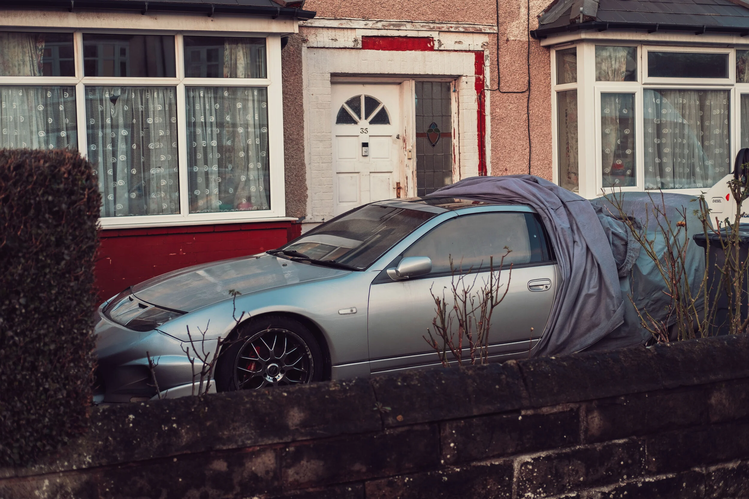 FH: I think it's more about how the whole scene works together, the car is the focus but it's also equally important how it interacts with its environment. There have been quite a few occasions whilst photographing for Parked that i've seen an amazing cars parked on a drive or on a road, but just because of access or surroundings i've had to leave the shot out, or sometimes just couldn't make it work in the viewfinder so not snapped it all together. I think my mindset stayed the same with Parked as it would have when shooting my broader personal work, and I think that helped to keep a consistent style and overall look to the images even though some are shot 3 years apart. I was always trying to say as much as I could about the car in frame without it becoming cluttered or a mess, is there a broken window that's been taped up, a posh house number behind an abandoned car, a little trinket on dash that helps you imagine what the owner might be like, I always wanted there to be something else in the frame with the car that helped us imagine the life it might've lived up to me discovering it parked up.