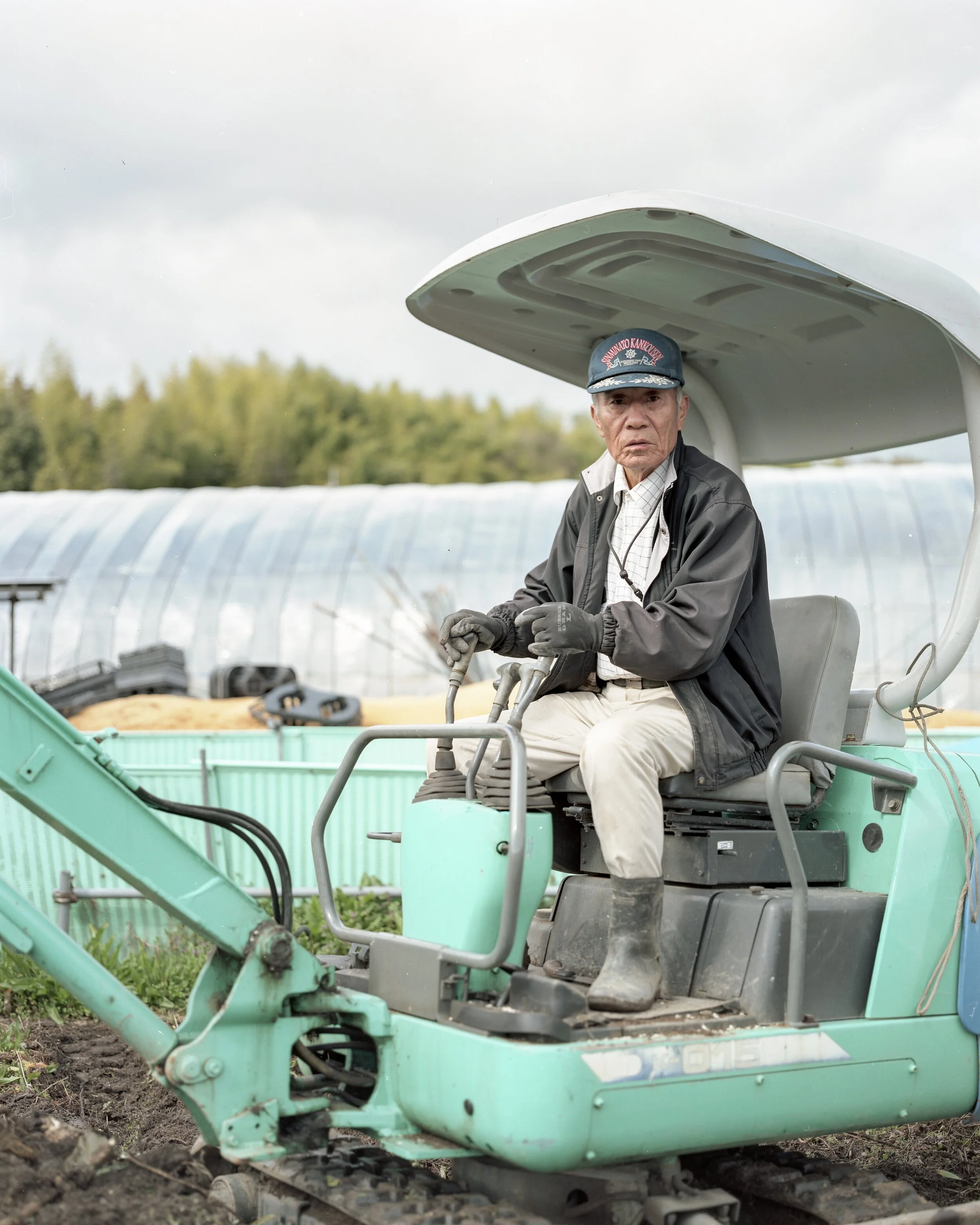 On the first day of the project I drove off into a ditch on a mountain road. This was totally 100% my fault for being naive about driving in Japan. One, the steering wheel was on the other side of the car. The second, mountain roads in Japan are narrow and tricky. I was distraught, in disbelief, and thought the project was going to end on the very first day. Luckily, right behind me was a mother who was on her way home from grocery shopping. She helped me call a tow truck and waited with me for over an hour until it arrived. We spoke about what life was like in Shiso and Hyogo Prefecture. It was during this conversation that I realized I was arrogant to think I could capture a place without understanding the people that lived there. Sure, I could take photos of trees and rivers that would print beautifully, but there would be no substance. Later that day, the very first photo of this project turned out to be a shot of a man working on his field in a tractor. He had on a SF giants baseball cap, and it turned out his daughter had moved to SF. He was so excited that he called her up and we spoke over the phone. I am not religious, but if there was a sign from God this was it. From then, I decided this project was going to be about people.